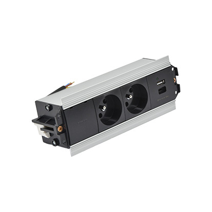 WYCOFANY Z OFERTY - Dostępny do wyczerpania zapasów magazynowych, mediaport Indesk: 2x250V typ E+ładowarka USB A-C, Simon 480, IP20, aluminium czarny