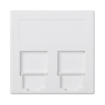 Plakietka teleinformatyczna, SIMON 500, NEXANS, podwójna płaska z osłonami, 50×50mm, czysta biel