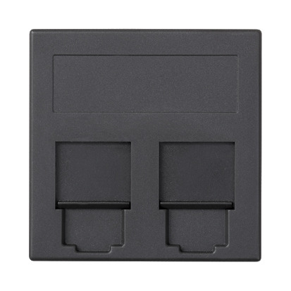 Plakietka teleinformatyczna, SIMON 500, NEXANS, podwójna płaska z osłonami, 50×50mm, szary grafit