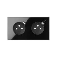 2-element panel: 2 sockets with 2 integrated USB C chargers, black, Charging current: 2.1A