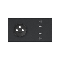 Front kit 2-gang: 1 socket + 2x1 USB charger type C, black