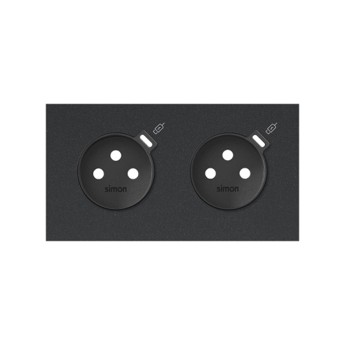Front kit 2-gang: 1 socket + 2x1 USB charger type C, black
