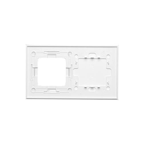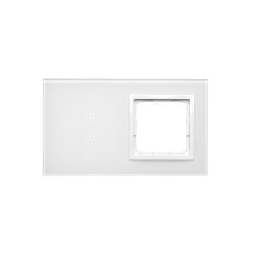 Touch panel 2 modules, Modul 1: 2 horizontal touch fields, Module 2: space for Simon 54 module, Fixing: horizontal, White pearl