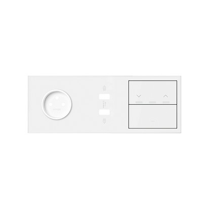 WITHDRAW FROM OFFER - Available while stocks last, 3-element panel: 1 socket + 1 double USB charger + 1 blind controller + 1 key, Simon 100, white matt