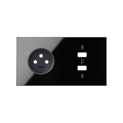 WITHDRAW FROM OFFER - Available while stocks last, 2-element panel: 1 socket + 2x1 SmartCharge USB charger 2x 2.1 A, Simon 100, black matt