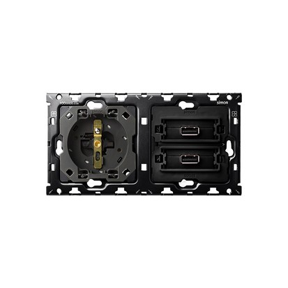 WITHDRAW FROM OFFER - Available while stocks last, 2-element panel: 1 socket + 2x1 SmartCharge USB charger 2x 2.1 A, Simon 100, black