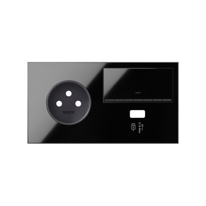 WITHDRAW FROM OFFER - Available while stocks last, double panel: 1 socket + 1 dimmer + 1 USB charger (right side), Simon 100, black