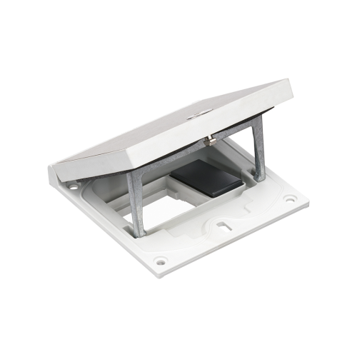 Floor box insert, inox steel, IP66, IK08, 2.5×K45, module 22,5x45mm with 2 Keyston latch for RJ45 or multimedia connectors, empty space for 2 modules 45x45, easy access lock