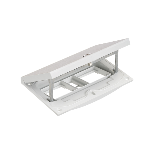 Floor box insert, inox steel, IP66, IK08, 2.5×K45, module 22,5x45mm with 2 Keyston latch for RJ45 or multimedia connectors, empty space for 2 modules 45x45, easy access lock
