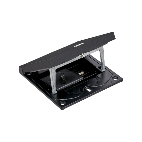 Floor box insert, black, IP66, IK08, 1.5×K45, socket type F (schuko), module 22,5x45mm with Keyston latch for RJ45 or multimedia connectors, allen key lock