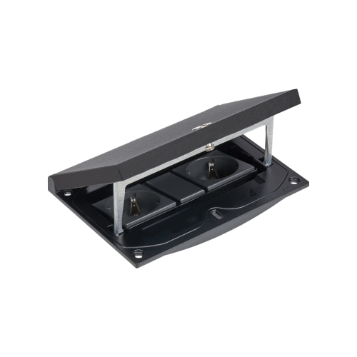 Floor box insert, black, IP66, IK08, 1.5×K45, socket type F (schuko), module 22,5x45mm with Keyston latch for RJ45 or multimedia connectors, allen key lock