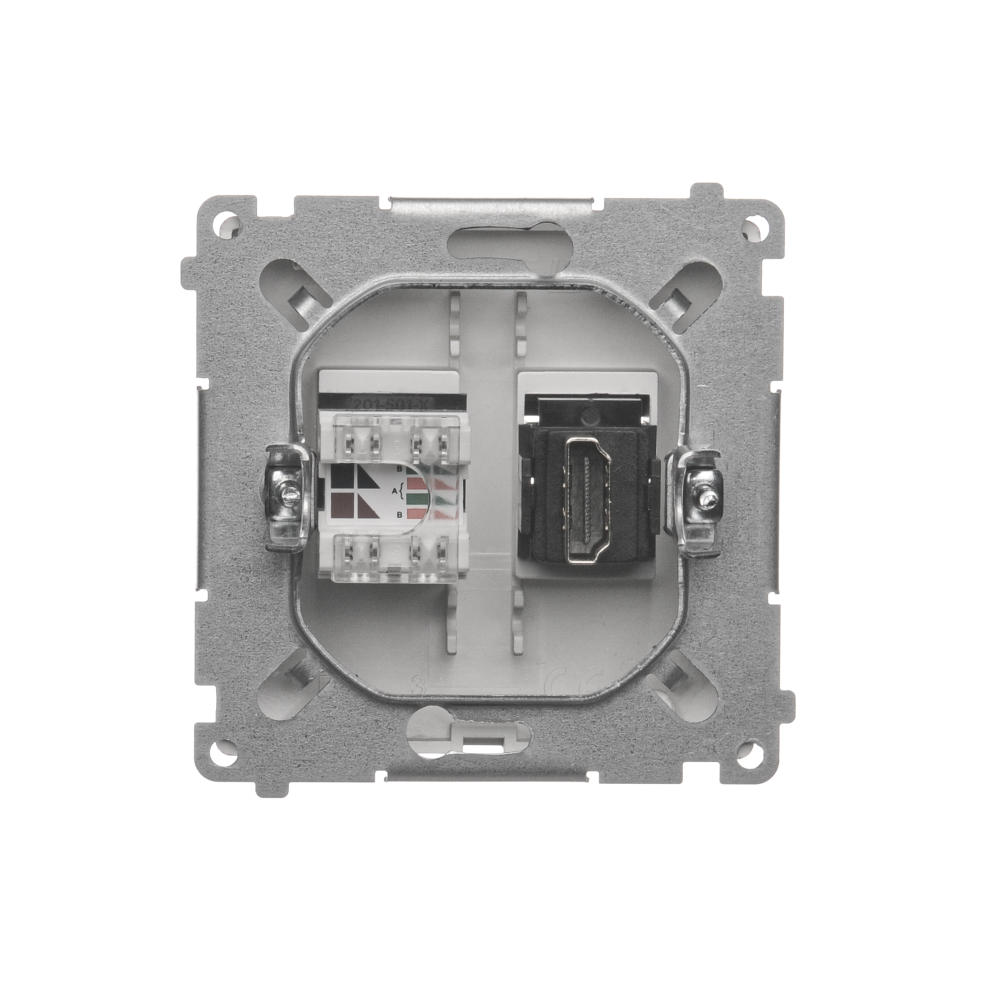 HDMI socket + computer socket RJ45 cat.6, Inox, metallized