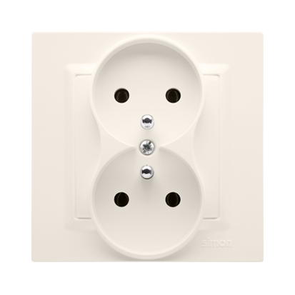 Gniazdo wtyczkowe podwójne z uziemieniem, 16A, kremowy