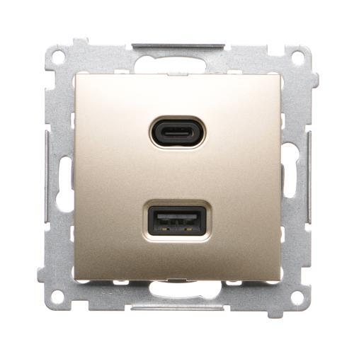 Ładowarka USB podwójna, C+A, złoty mat, metalizowany, 30W