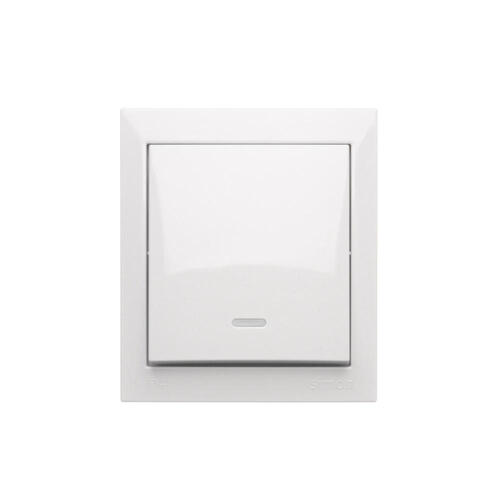 Przycisk pojedynczy zwierny bez piktogramu z podświetleniem LED bryzgoszczelny, 10AX, biały