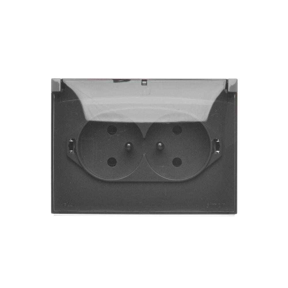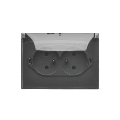 Gniazdo wtyczkowe podwójne z uziemieniem w wersji IP44 - klapka w kolorze transparentnym, 16A, szybkozłącza, ciemnoszary