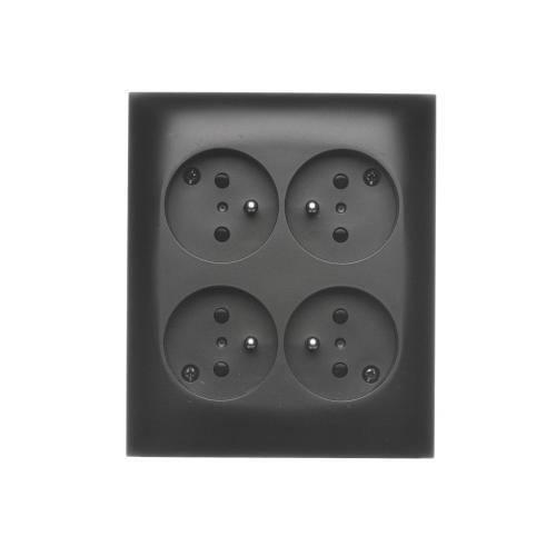 Gniazdo wtyczkowe poczwórne z uziemieniem - w wersji IP20, 16A, zaciski śrubowe, czarny mat