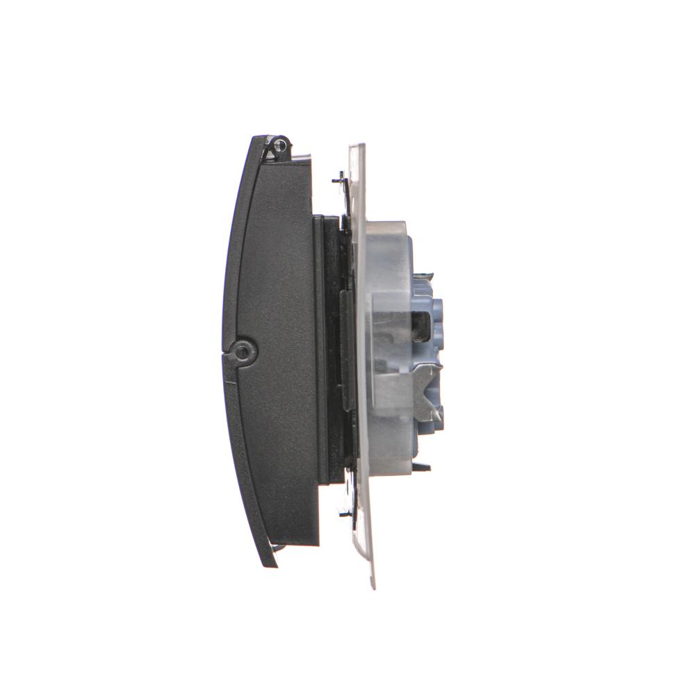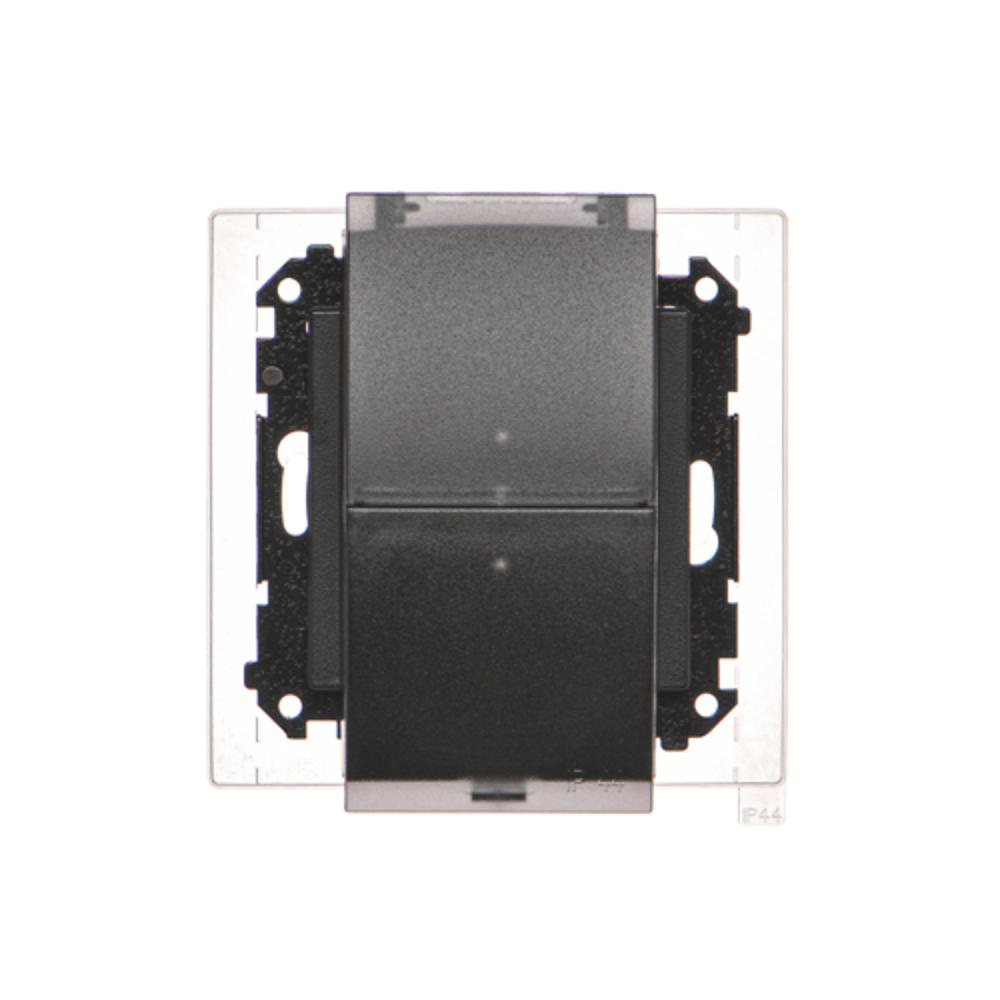 Gniazdo wtyczkowe podwójne do wersji IP44 - z uszczelką - klapka w kolorze pokrywy, moduł, 16A, szybkozłącza, grafitowy mat