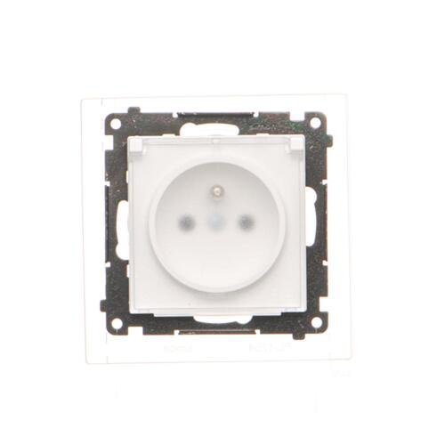 Gniazdo wtyczkowe pojedyncze do wersji IP44 - bez uszczelki - klapka w kolorze pokrywy, moduł, 16A, szybkozłącza, biały mat