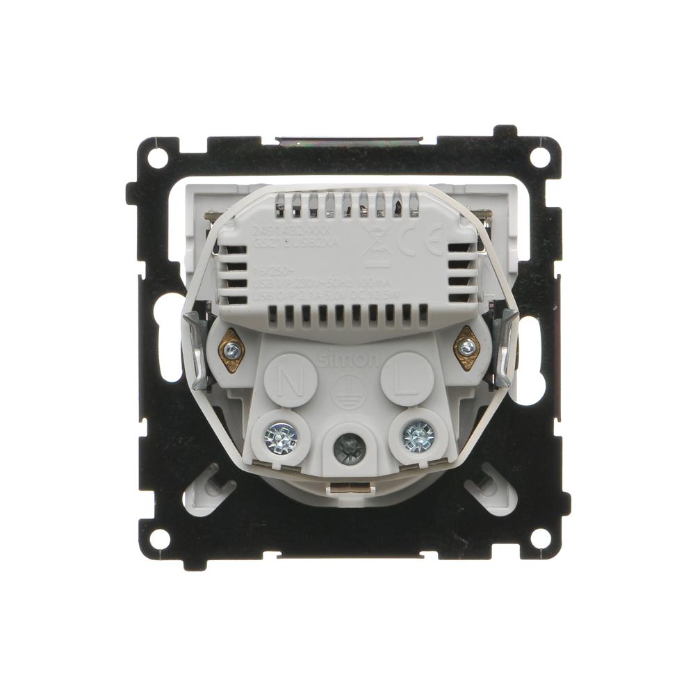 WYCOFANY Z OFERTY - Dostępny do wyczerpania zapasów magazynowych, gniazdo Schuko ze zintegrowaną ładowarką 2xUSB, (moduł), Simon 55, IP20, 16A, jasnoszary mat