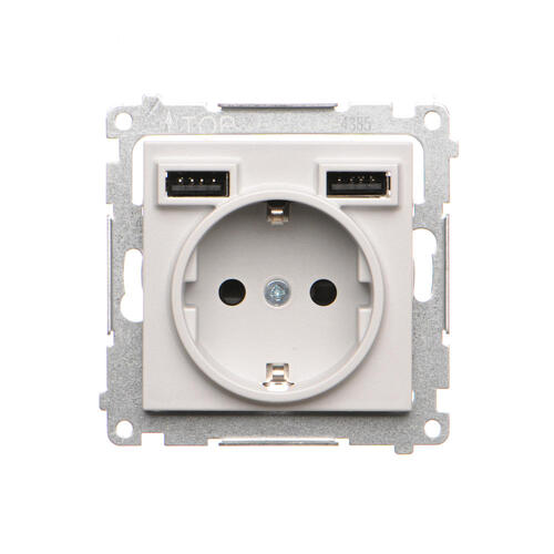 WYCOFANY Z OFERTY - Dostępny do wyczerpania zapasów magazynowych, gniazdo Schuko ze zintegrowaną ładowarką 2xUSB, (moduł), Simon 55, IP20, 16A, jasnoszary mat