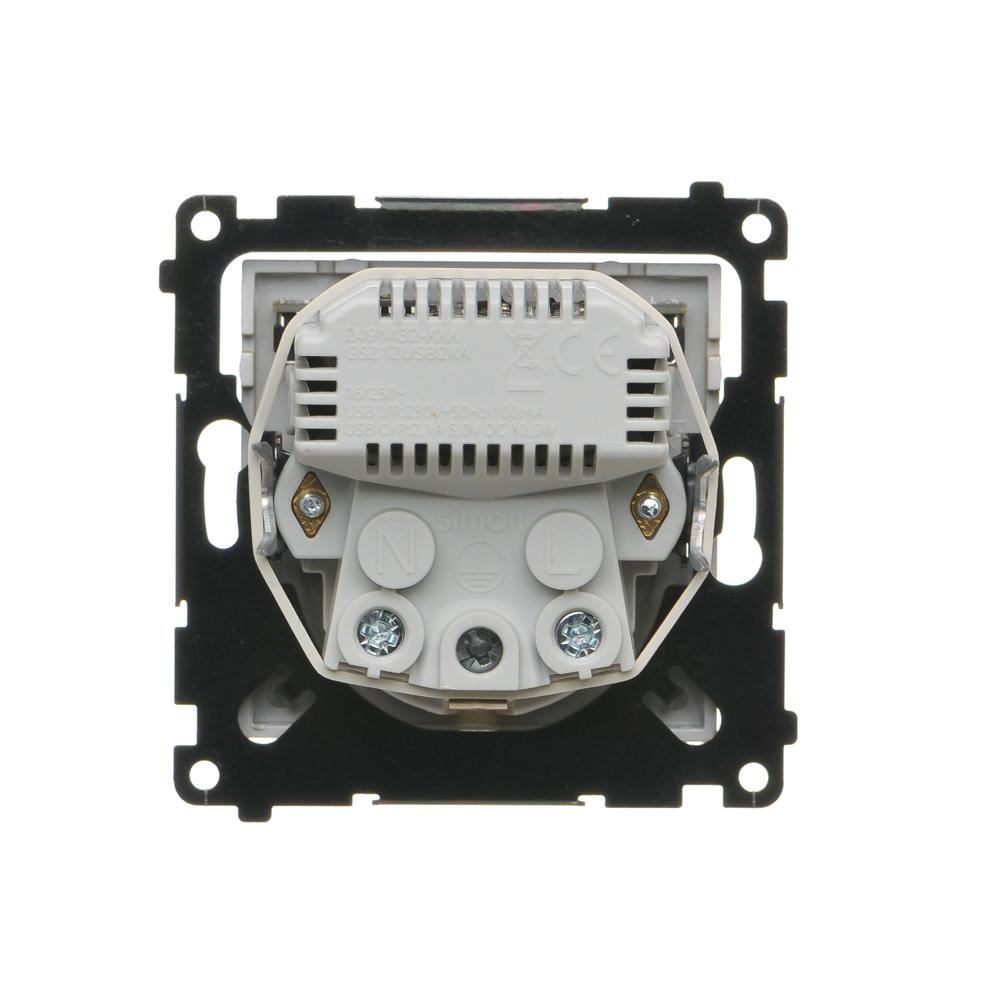 WYCOFANY Z OFERTY - Dostępny do wyczerpania zapasów magazynowych, gniazdo Schuko ze zintegrowaną ładowarką 2xUSB, (moduł), Simon 55, IP20, 16A, jasnoszary mat