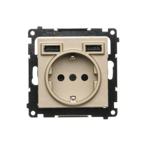 WYCOFANY Z OFERTY - Dostępny do wyczerpania zapasów magazynowych, gniazdo Schuko ze zintegrowaną ładowarką 2xUSB, (moduł), Simon 55, IP20, 16A, szampański mat