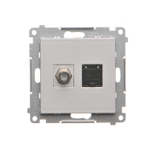 Gniazdo antenowe typu „F” + komputerowe RJ45 kat.6, moduł, aluminium mat