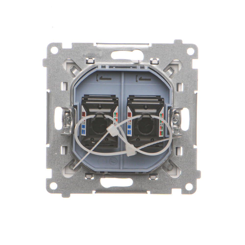 - Nazwa produktu/Rodzaj: gniazdo komputerowe podwójne RJ45 kategoria 6, z przesłoną przeciwkurzową