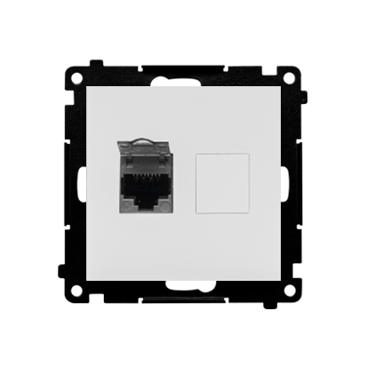 Gniazdo komputerowe pojedyncze ekranowane RJ45 kategoria 6, z przesłoną przeciwkurzową, biały mat