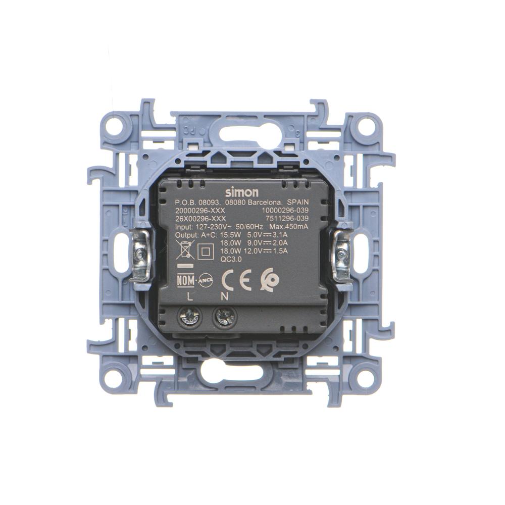KONIEC PRODUKCJI - DOSTĘPNY DO WYCZERPANIA STANÓW MAGAZYNOWYCH, zamiennik: CEC2CAQ.01/11, ładowarka USB podwójna, (moduł), Simon 10, IP20, biały, 18W