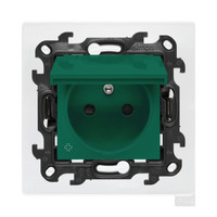 START SPRZEDAŻY: 7 MAJA 2026, gniazdo wtyczkowe pojedyncze z uziemieniem do wersji IP44 z uszczelką, z przesłonami torów prądowych, (moduł), Simon 24, IP44, 16A, antybakteryjny zielony