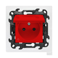 START SPRZEDAŻY: 7 MAJA 2026, gniazdo wtyczkowe pojedyncze z uziemieniem do wersji IP44 z uszczelką, z przesłonami torów prądowych, (moduł), Simon 24, IP44, 16A, czerwony