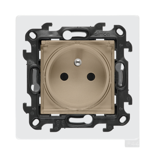 START SPRZEDAŻY: 7 MAJA 2026, gniazdo wtyczkowe pojedyncze z uziemieniem do wersji IP44 z uszczelką, z przesłonami torów prądowych, (moduł), Simon 24, IP44, 16A, szampański mat