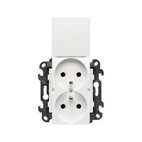 START SPRZEDAŻY: 7 MAJA 2026, gniazdo wtyczkowe podwójne z uziemieniem do wersji IP44 z uszczelką, bez przesłon torów prądowych, (moduł), Simon 24, IP20/IP44, 16A, biały