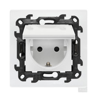 START SPRZEDAŻY: 7 MAJA 2026, gniazdo wtyczkowe Schuko pojedyncze do wersji IP44 bez uszczelki, z przesłonami torów prądowych, (moduł), Simon 24, IP44, biały