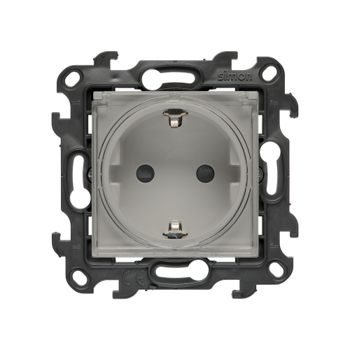 START SPRZEDAŻY: 7 MAJA 2026, gniazdo wtyczkowe Schuko pojedyncze do wersji IP44 bez uszczelki, z przesłonami torów prądowych, (moduł), Simon 24, IP44, grafitowy mat