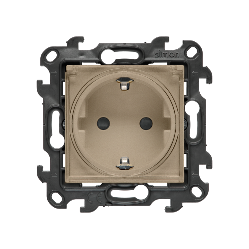 START SPRZEDAŻY: 7 MAJA 2026, gniazdo wtyczkowe Schuko pojedyncze do wersji IP44 bez uszczelki, z przesłonami torów prądowych, (moduł), Simon 24, IP44, szampański mat
