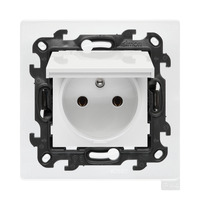 START SPRZEDAŻY: 7 MAJA 2026, gniazdo wtyczkowe pojedyncze z uziemieniem do wersji IP44 z uszczelką, bez przesłon torów prądowych, (moduł), Simon 24, IP44, 16A, biały