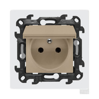 START SPRZEDAŻY: 7 MAJA 2026, gniazdo wtyczkowe pojedyncze z uziemieniem do wersji IP44 z uszczelką, bez przesłon torów prądowych, (moduł), Simon 24, IP44, 16A, szampański mat