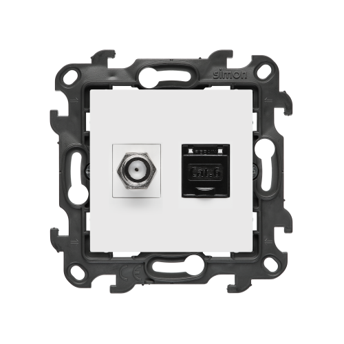 START SPRZEDAŻY: 7 MAJA 2026, gniazdo antenowe typu „F” + komputerowe RJ45 kat.6, (moduł), Simon 24, IP20, biały