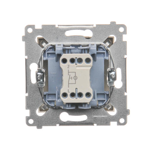 Przycisk pojedynczy zwierny bez piktogramu z podświetleniem LED, (moduł), 16AX, zaciski śrubowe, srebrny mat, metalizowany