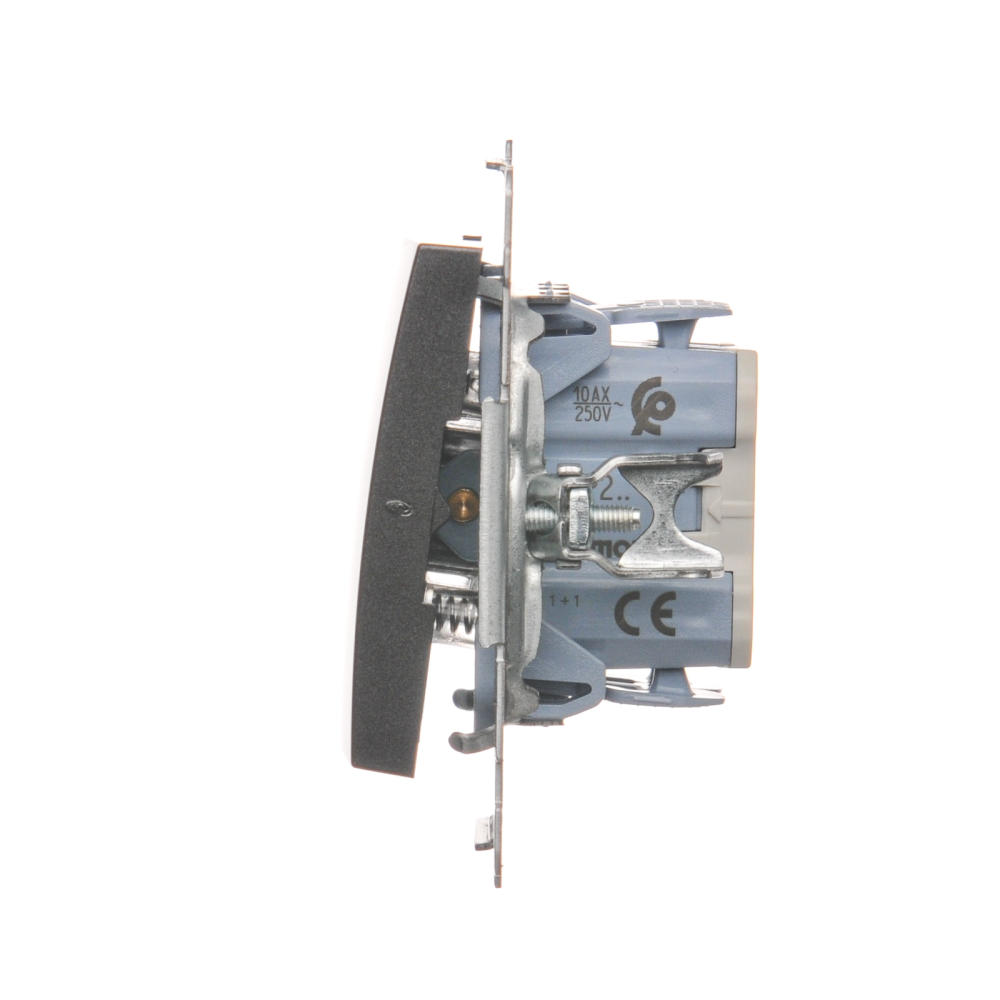 Przycisk podwójny zwierny, dwuobwodowy: 2 wejścia, 2 wyjścia, (moduł), 10AX, szybkozłącza, antracyt, metalizowany