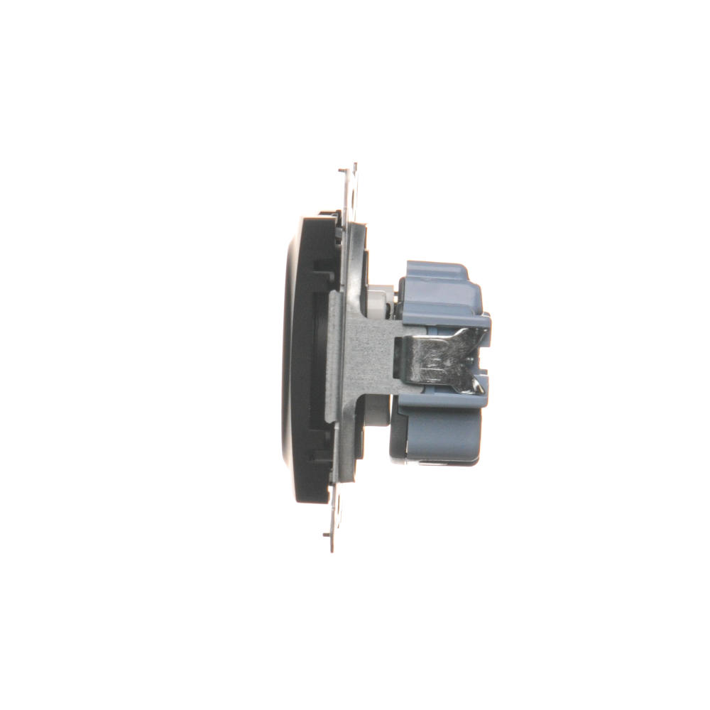 Gniazdo wtyczkowe pojedyncze bez uziemienia z przesłonami torów prądowych, (moduł), 16A, 250V, zaciski śrubowe, antracyt, metalizowany