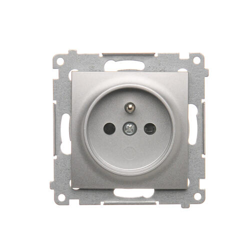 Gniazdo wtyczkowe pojedyncze z uziemieniem z przesłonami torów prądowych, (moduł), 16A, 250V, zaciski śrubowe, srebrny mat, metalizowany