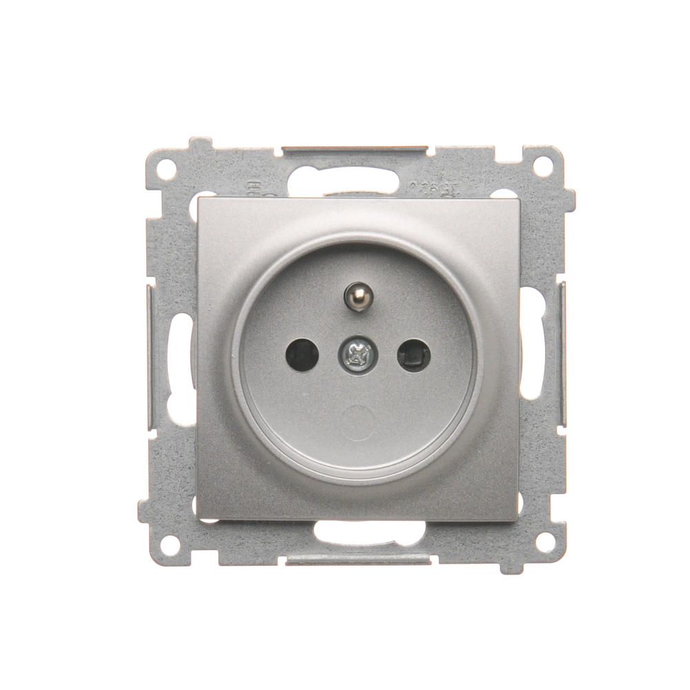 Gniazdo wtyczkowe pojedyncze bez uziemienia z przesłonami torów prądowych, (moduł), 16A, 250V, zaciski śrubowe, srebrny mat, metalizowany