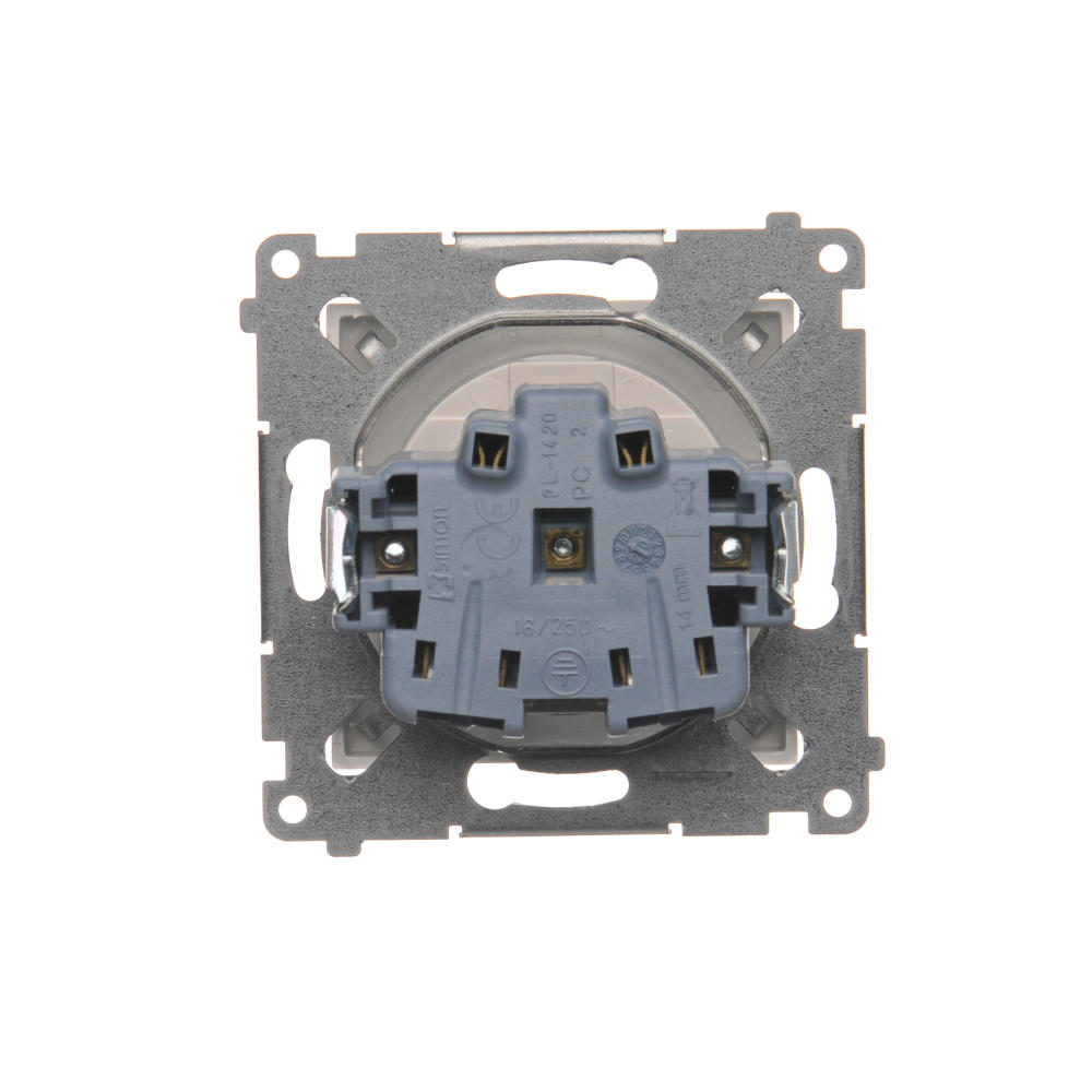 Gniazdo wtyczkowe pojedyncze z uziemieniem z przesłonami torów prądowych, (moduł), 16A, 250V, zaciski śrubowe, srebrny mat, metalizowany
