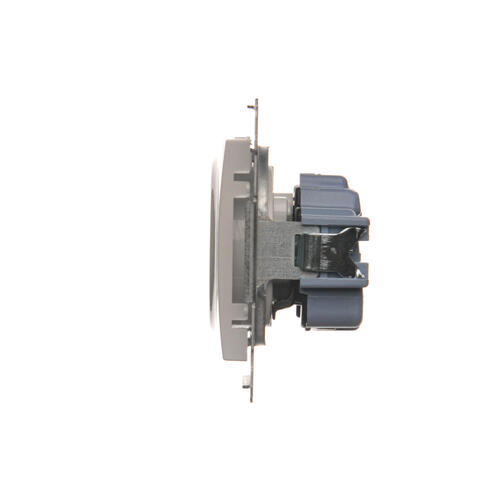 Gniazdo wtyczkowe pojedyncze bez uziemienia z przesłonami torów prądowych, (moduł), 16A, 250V, zaciski śrubowe, srebrny mat, metalizowany