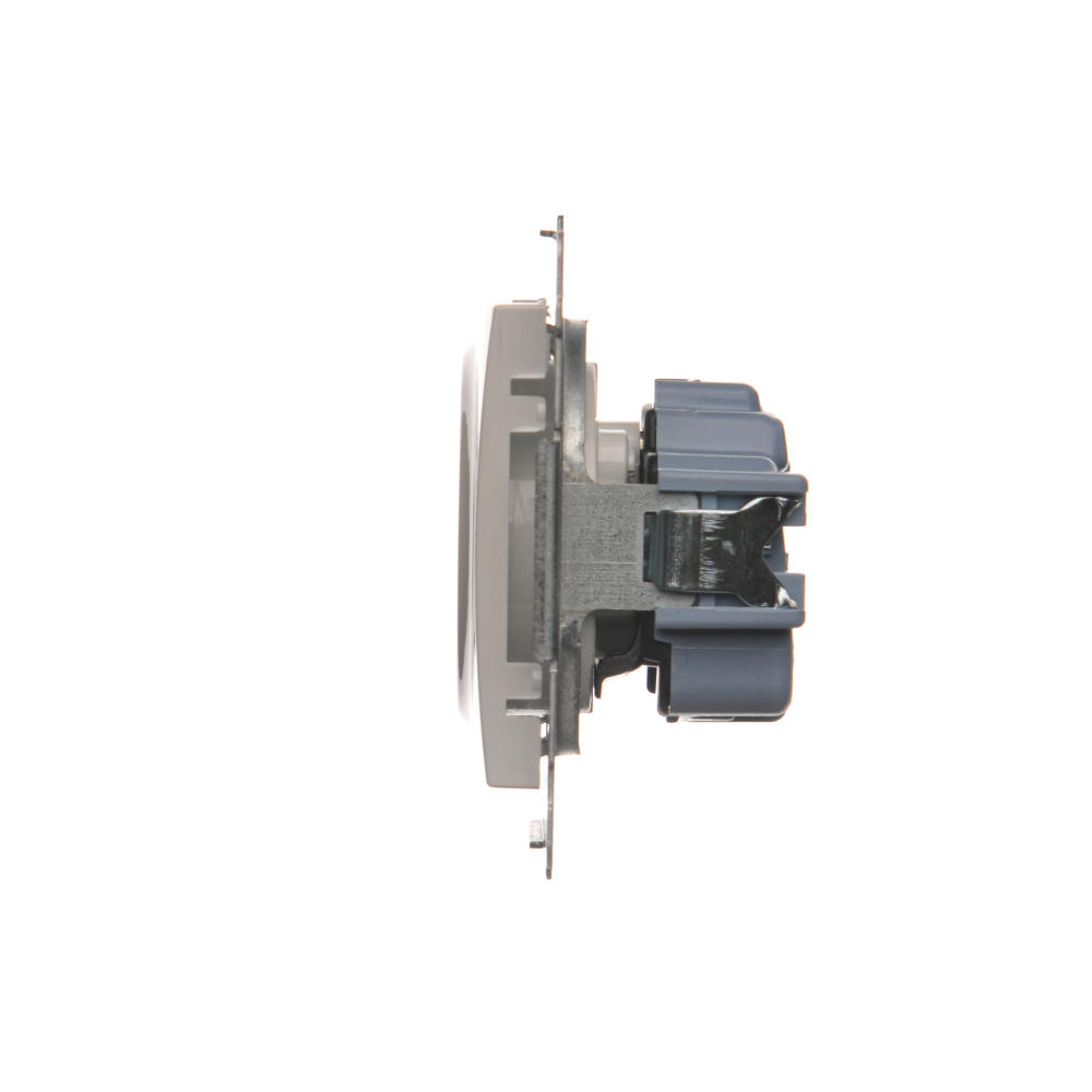 Gniazdo wtyczkowe pojedyncze z uziemieniem z przesłonami torów prądowych, (moduł), 16A, 250V, szybkozłącza, srebrny mat, metalizowany