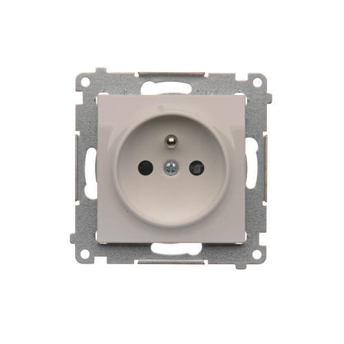 Gniazdo wtyczkowe pojedyncze bez uziemienia z przesłonami torów prądowych, (moduł), 16A, 250V, zaciski śrubowe, kremowy